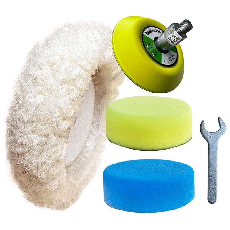 Noyfemr 6 Pcs Buffing Polishing Kit for Milwaukee M12 Polisher/Sander,Includes M9 to 5/16"-24 Adapter, 3" Backing Pad, sponge and Wool Buffing Pads