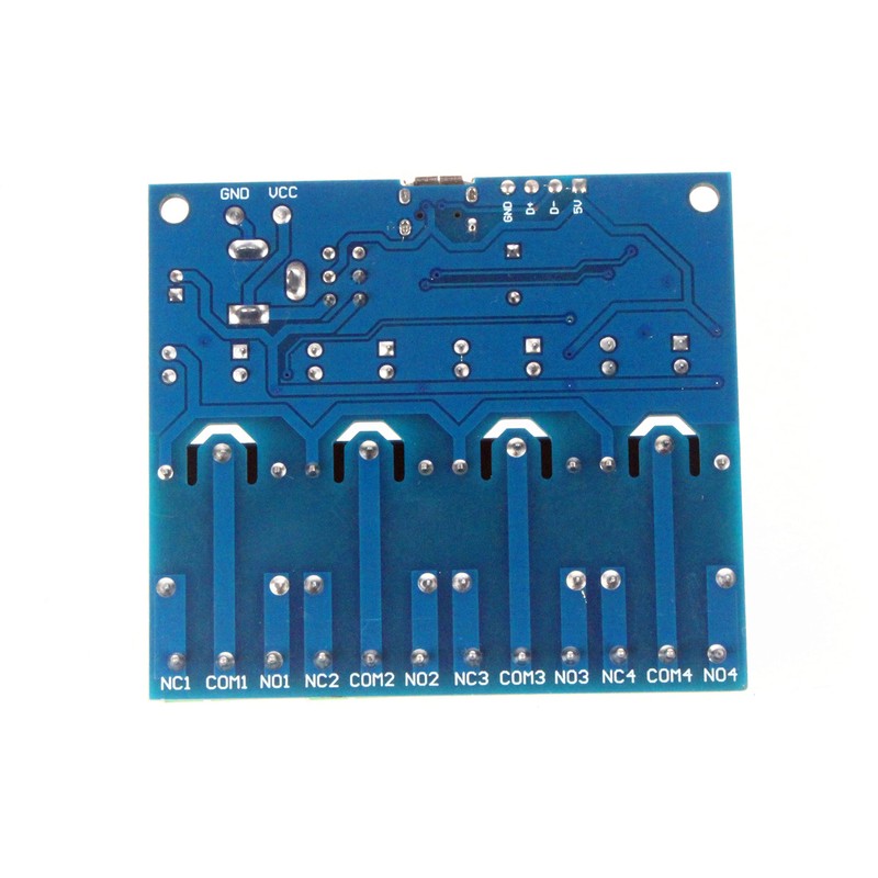 • NOYITO 4-Channel Micro USB Relay Module is equipped with a stable USB to serial port chip and a microcontroller. It can use the serial port debugging software to send serial commands on the computer to control the opening and closing of the 4-channel relay.