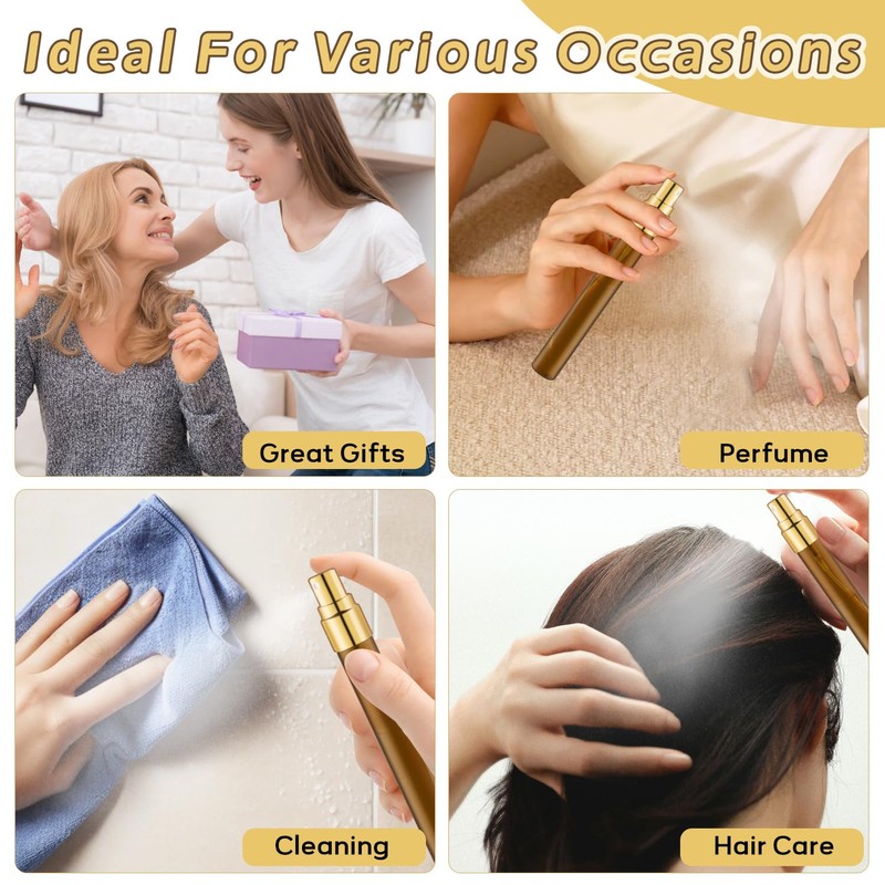 - Widely used in beauty, hair care, home cleaning, watering plants. The small perfume spray bottles can be used for various purposes, such as storing essential oils, perfumes, you can apply them to store your favorite scents.