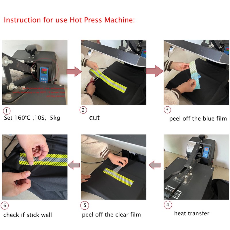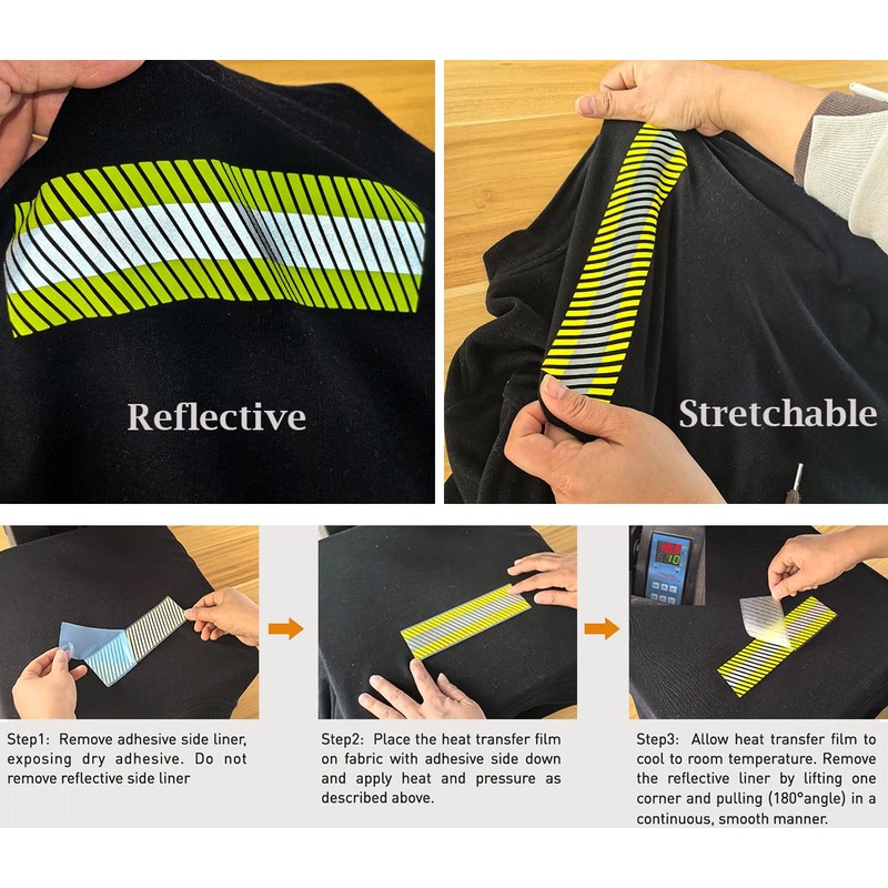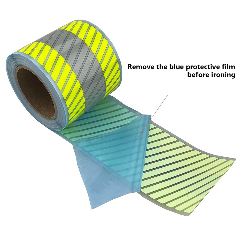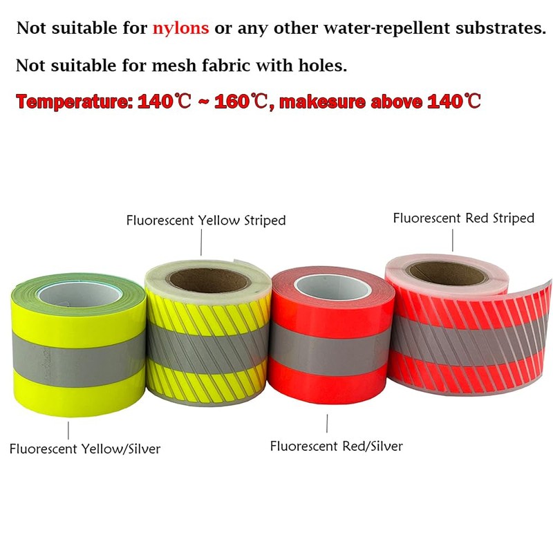 - Can be ironed directly onto T-shirts, vests, pants, bags,jackets, etc. It can also be ironed on webbing, oxford, tricot fabric tapes and then sew the dual-color warning tape onto workwear.
