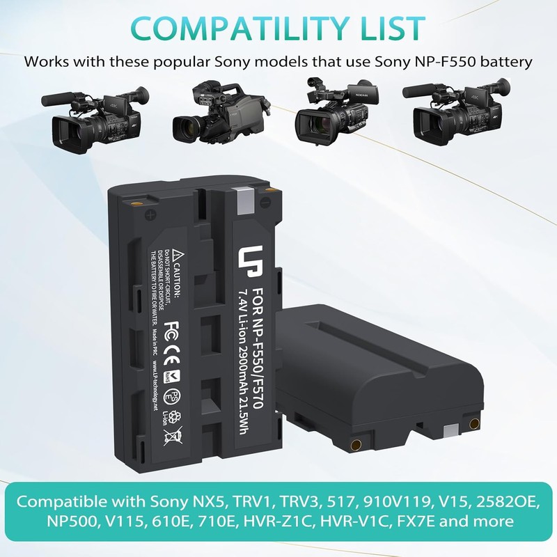 - ❀STANDARD COMPATIBILITY: LP NP-F550 battery meets and can be interchangeable with the OEM Sony NP F970, F960, F770, F750, F570, F550, F530, F330 battery & charger. Work with Sony camcorders like CCD-TR series and more (Check the description for the full compatibility list).