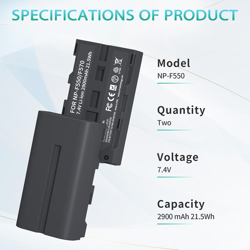 - ❀100% SAFETY: LP NP-F550 battery set has protections for overcharge, over discharge, short-circuit, surge, overvoltage, and overcurrent with CE, FCC, RoHS Certifications, tested by manufacturer to match OEM products.