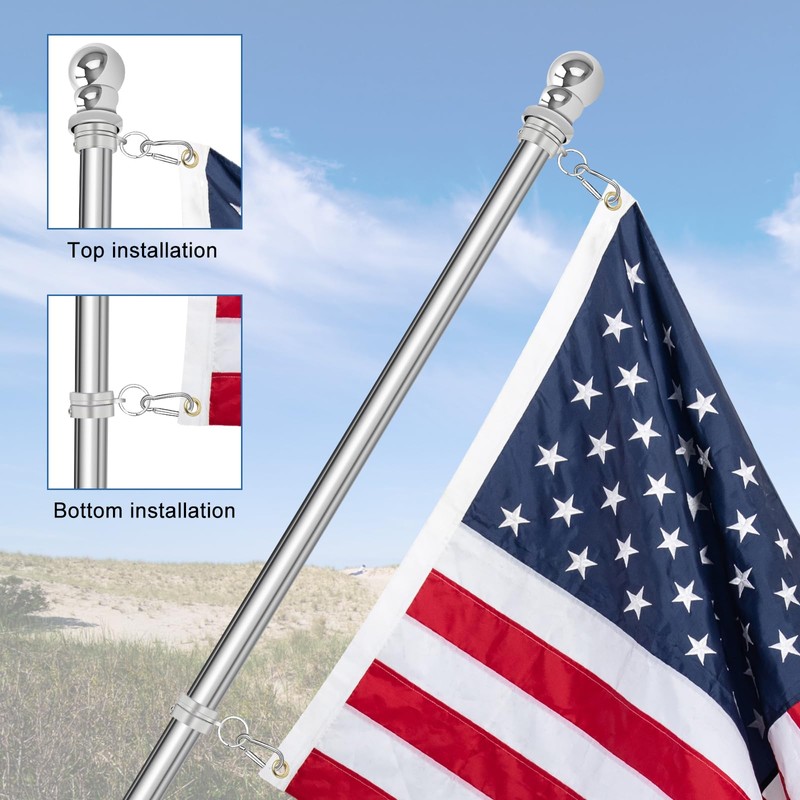 - Meticulously Crafted - Equipped with two carabiner and two chains to connect the flag pole and flag, just hang the carabiner between the flag pole hole and the chain to reduce installation difficulty.