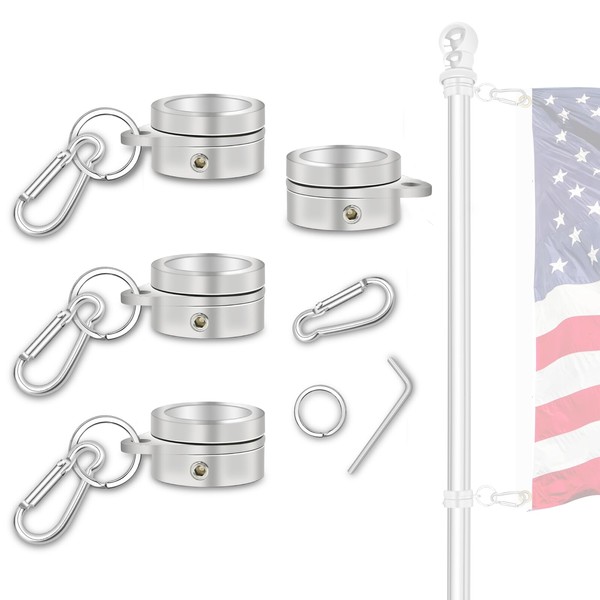 NQ Flag Pole Rotating Rings for 3/4~1 Inch Diameter Flag Pole, Aluminum Alloy Flag Pole Rings, Tangle Free Flag Pole Clips, Flagpole Mounting Rings with Carabiner (Silver)