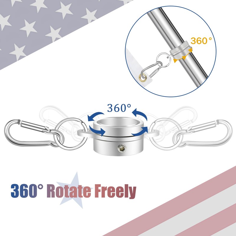 - New Upgraded Design - The mounting rings have a 360 degrees rotating anti-wrap ring, and we add a strong chain ring in order to make the best stabilizer clips for keeping flags in place and hang flag more conveniently. It allows flags to fly freely in the direction of the wind, and preventing the flag from wrapping around the flagpole.