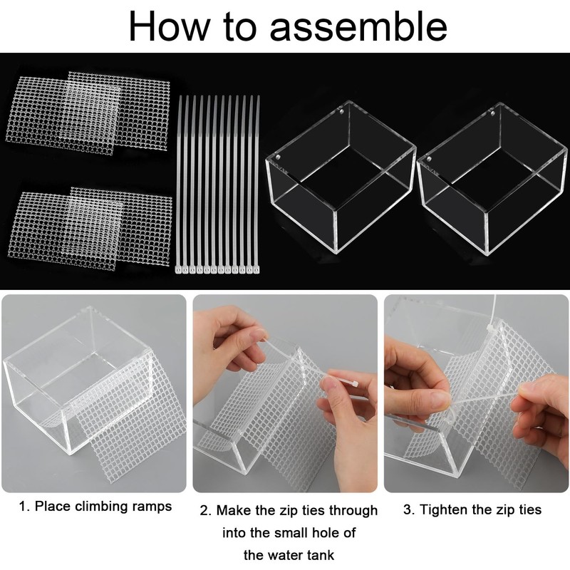 - Package Content: You will receive 2 pieces of water tanks, 4 pieces of clear mesh climbing ramps, and 12 pieces of cable ties. It is a great habitat tank after simple assembly and decoration.
