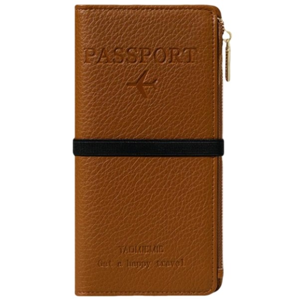 NQQNQQ RFID-Blocking Leather Travel Wallet & Passport Holder with Zipper Pocket, Card Slots, and Phone Compartment – Waterproof Travel Organizer for Women & Men. TG-1 (Brown)