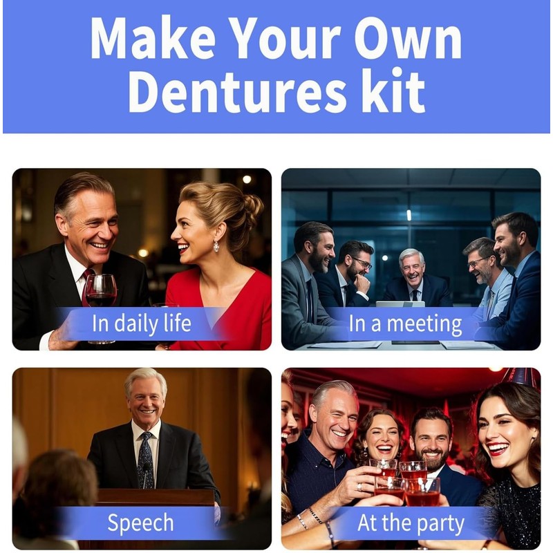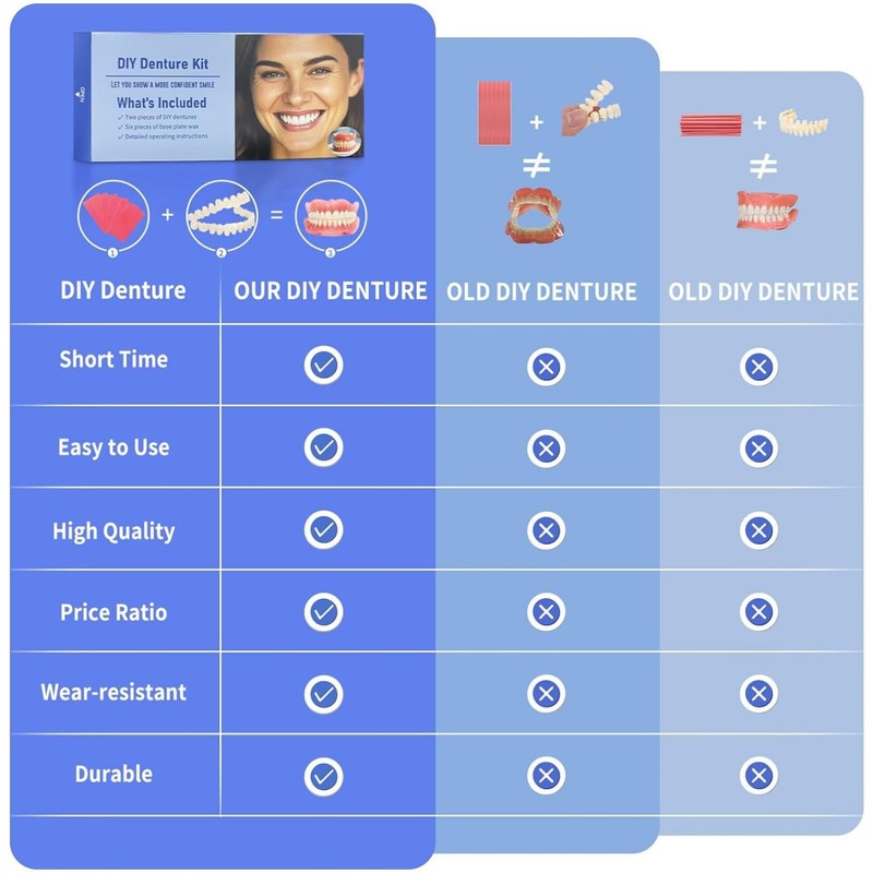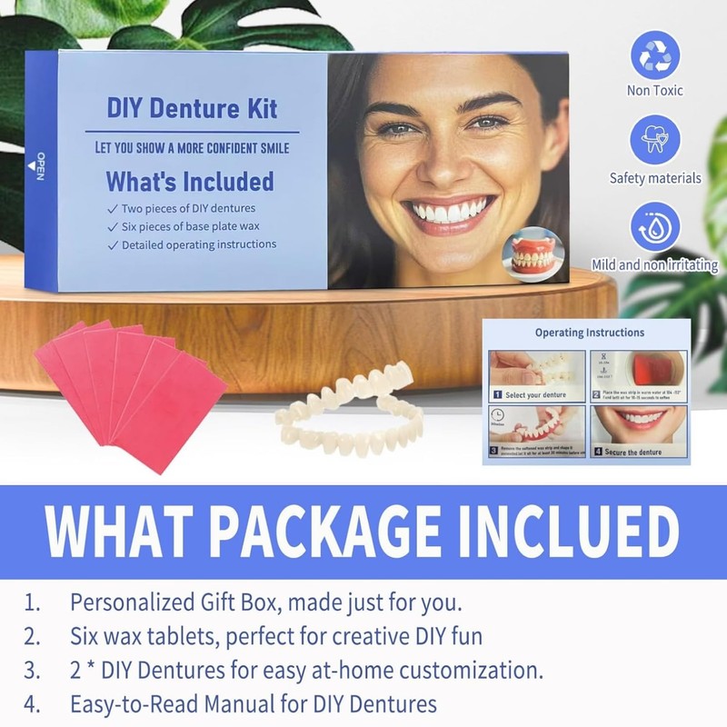 - Perfect Gift for Confidence BoostThe DIY denture kit makes for an exceptional gift for friends and family.It offers a convenient solution for those in need of fake teeth or partial dentures.Help your loved ones effortlessly regain their natural smile and confidence, and let them enjoy the fulfilling customization process, making it a thoughtful and unique present.