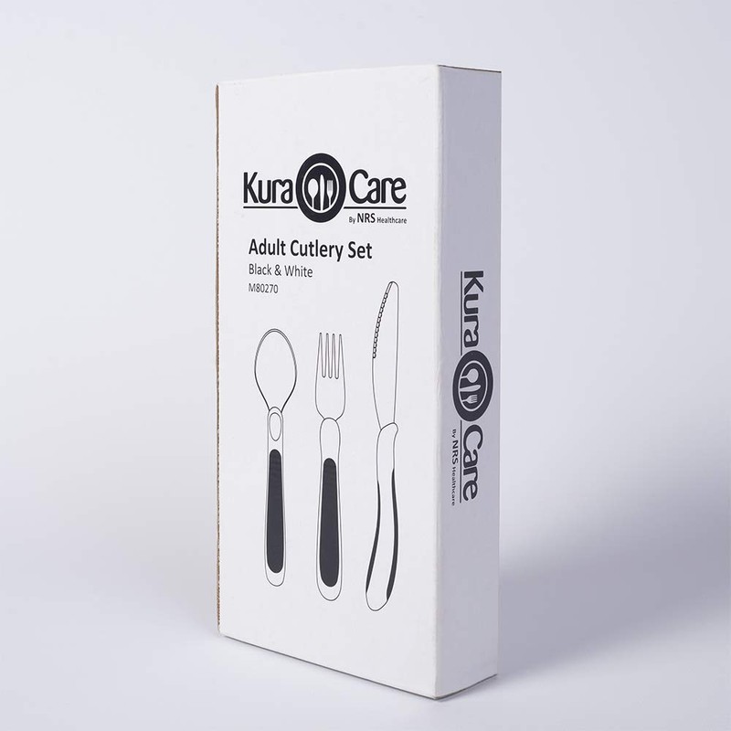 NRS Healthcare M80270 Kura Care Adult Cutlery Set, Easy Grip Set, Black & White