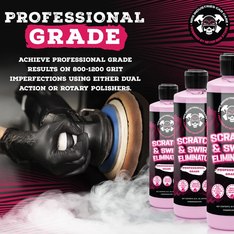 Elevate your vehicle's appearance with our Scratch & Swirl Eliminator, engineered to deliver a crystal-clear, mirror-like finish by effortlessly removing compound marks, micro-scratches, and oxidation. Designed for use with both dual action and rotary polishers, it tackles 800-1200 grit imperfections with ease. This advanced formulation works to provide professional-grade results, making it ideal for achieving a flawless, showroom-ready look. Application is a breeze—just shake well, apply a few pea-sized drops to your pad, and polish. Experience exceptional clarity and enhance your vehicle's surface with minimal effort.