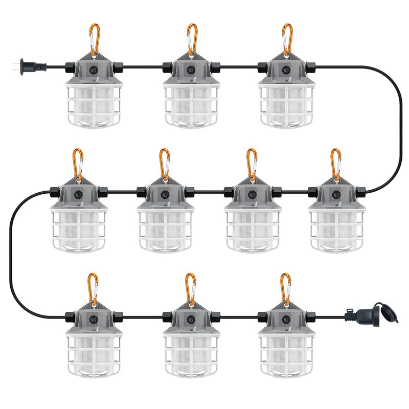 - Easy installation,Portable,Extendable: No additional installation required, plug and play, By carabiner, the light can be installed any place you want to hang.Each set has a bus length of 100FT and can be linked to a total of 10 sets, resulting in a brightness of 150,000 lumens, Improve construction efficiency.