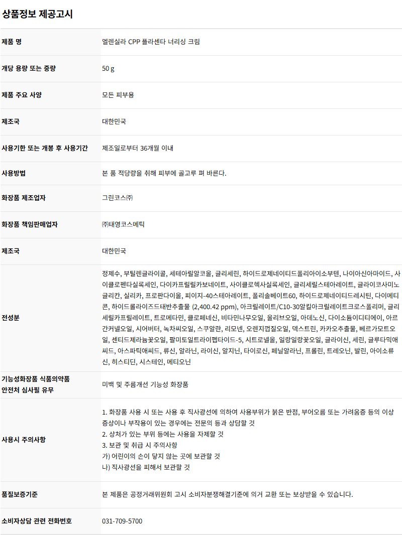 - 화장품제조업자, 화장품책임판매업자 및 맞춤형화장품판매업자: 상품 상세페이지 참조