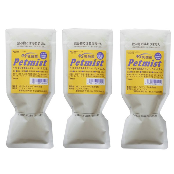 - NS Lactobacillus Pet Mist, 3 bags of refill pouches. 1 pouch of approximately 30 million live NS lactic acid bacteria