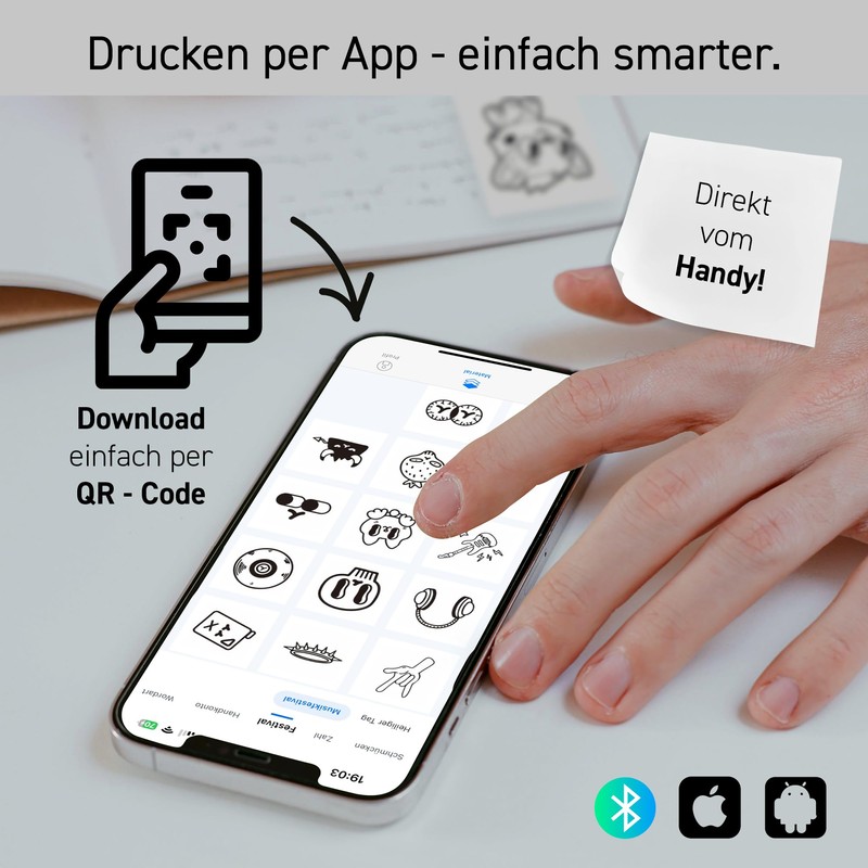 - The Bluetooth instant connection printer uses the 'Luck Jingle' app for an uncomplicated Bluetooth connection. It does not require complicated setup. Simply follow the instructions to quickly connect to your smartphone and start your journey into the world of wireless black-and-white printing. Capture your child's development and the significant moments of your travels with ease and experience the joy of precious memories.