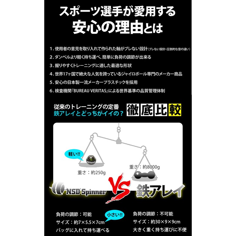 - [Sports Item Popular With Athletes, No. 1 Quality Management in the Industry (Pursuit of Anti-Shake Design, Quiet Design)] 1. The design uses an axis that was created using the feedback of users (does not shake, overwhelming difference in sound levels); 2. It is lighter to carry than dumbbells, and the load can be adjusted easily; 3. It has a shape that is easy to grip and is suitable for training; 4. It is manufactured by NSD Spinner, which is sold in 10 different countries around the world; 5. It uses plastic that is Made in Japan by a top manufacturer; 6. It has a world-class standard quality control system certified by the inspection agency Bureau Veritas.
