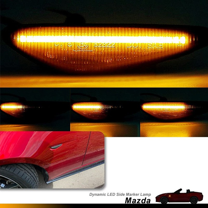 NSLUMO Sequential Amber LED Side Marker Lights for 2016-up Maz'da MX-5 ND 2009-2012 RX-8 Smoked Lens Front Fender Marker Lights Blinker Replace OEM Sidemarker Lamps