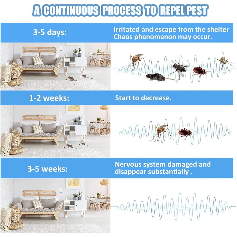 ✪Spider repellent indoor features the upgraded frequency conversion dual-wave technology, ensure that pests can't develop adaptability.