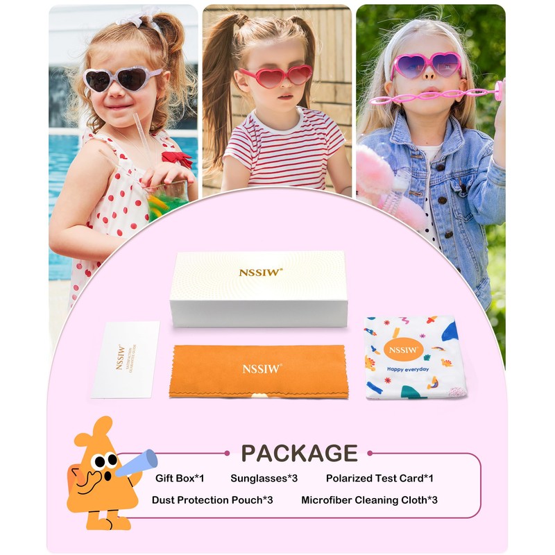 NSSIW Kids Polarized Sunglasses Heart-Sunglasses: Toddler Sun Glasses with UV Protection for Girls Youth Child 3Pack Age 3-12