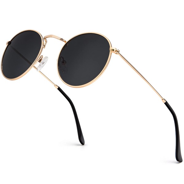 NSSIW Round Sunglasses for Women and Men, Premium Round Metal Sunglasses with Circle Frame and UV Protection (Gold/Grey)