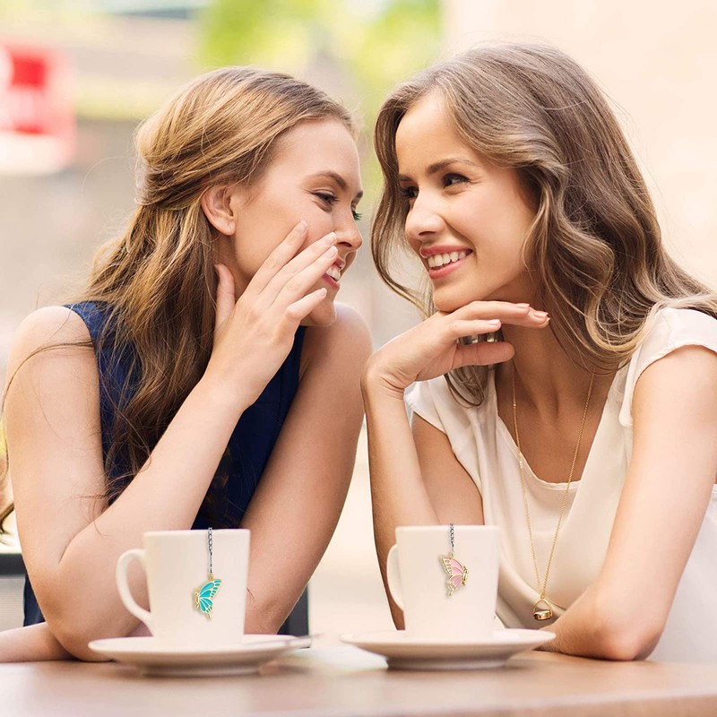 NSTaygate - 2 piezas de té para té suelto, infusor de té, bolas de té para té suelto con dije hecho a mano, bonito colgante de mariposa BFF, hojas sueltas, té, colador de té para niñas y mujeres, regalo de mejor amiga