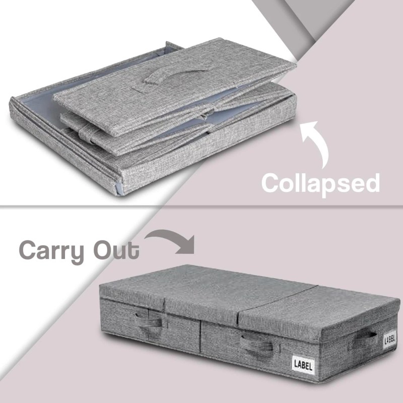 【EASY TO USE】: This under-bed storage box contains four carrying handles, making it easier to move and extract, and the stitched precision carrying handles won't break easily. The storage box features two business card frames that can be marked with the stored items, making it more convenient to find items. Can be folded up when not needed, can save space.