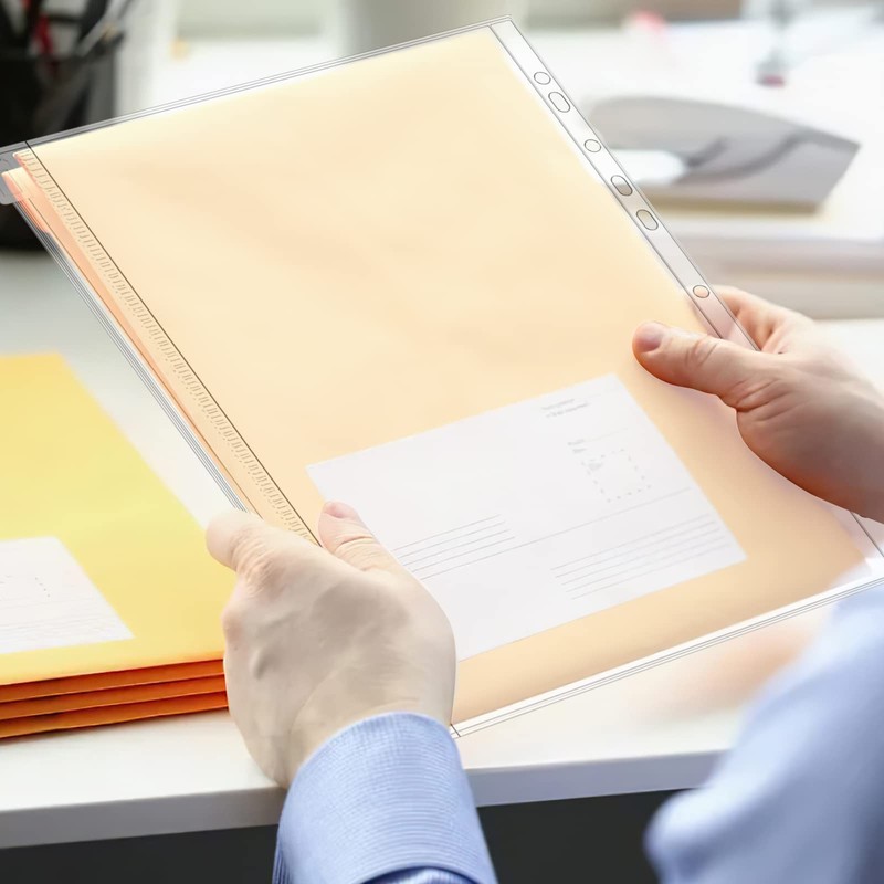 - What you get: you will receive a total of 15 perforated pockets with 11 holes and 3 sheets of adhesive that can be easily filed into ring binders and folders. The crystal-clear surface ensures easy identification of documents and makes it easy to find important documents.