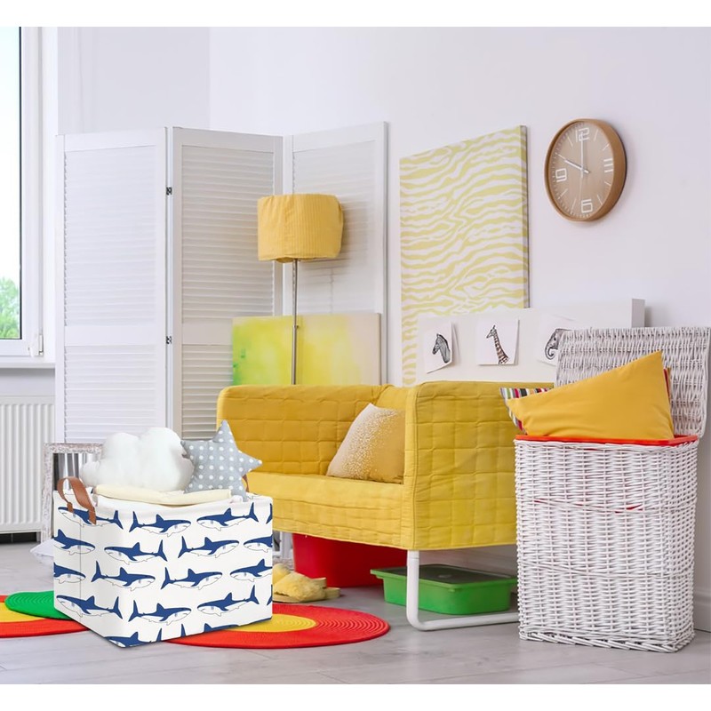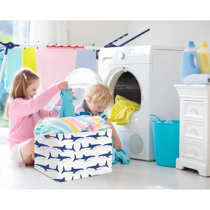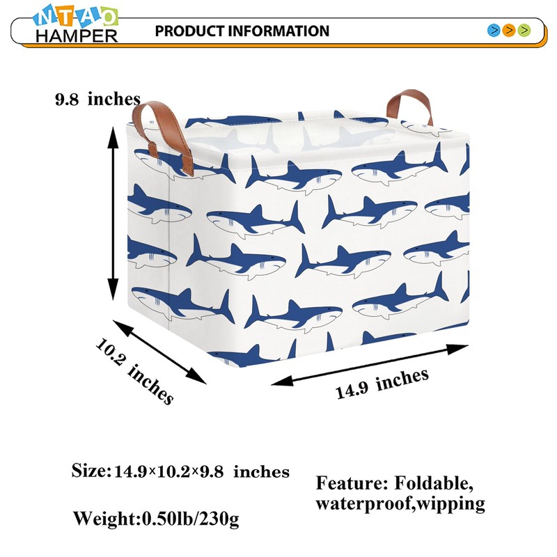 NTAOHAMPER Rectangular Storage Basket,Collapsible Gift Basket with Handles,Kids Toys/Books Box,Room Decor(Shark)