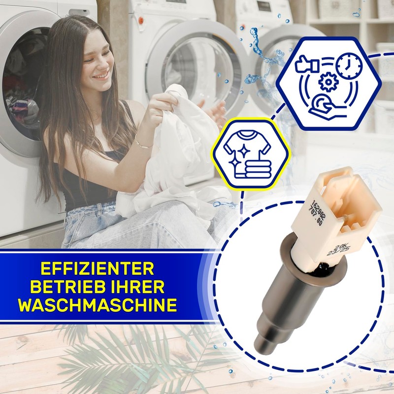- Function: the NTC temperature sensor transmits temperature data to the control board of the washing machine. This data helps regulate the heating element and ensures that the water reaches and maintains the right temperature throughout the wash cycle