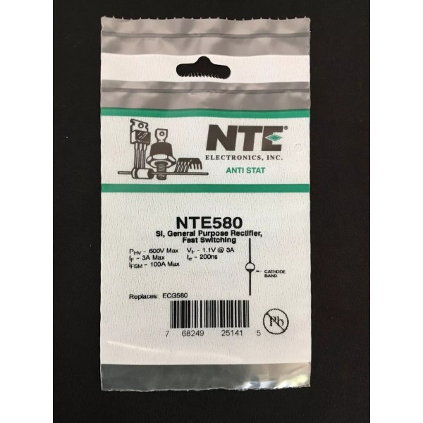 NTE580 - Si, General Purpose Rectifier, 600V 3A Fast Recovery 150ns