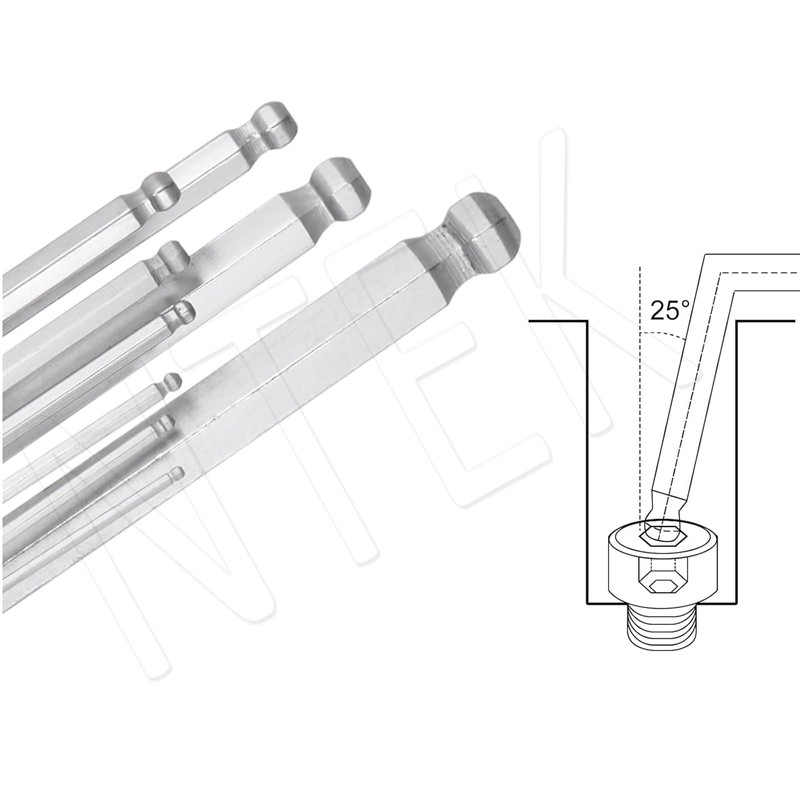 - ✅ ANTI-SLIP LONG BALL END DESIGN: Each hex key in this set features an anti-slip long ball end, allowing for easier access to hard-to-reach areas and angled entry up to 25 degrees. This design improves usability and efficiency, making it easier to work in tight spaces without sacrificing control or precision.