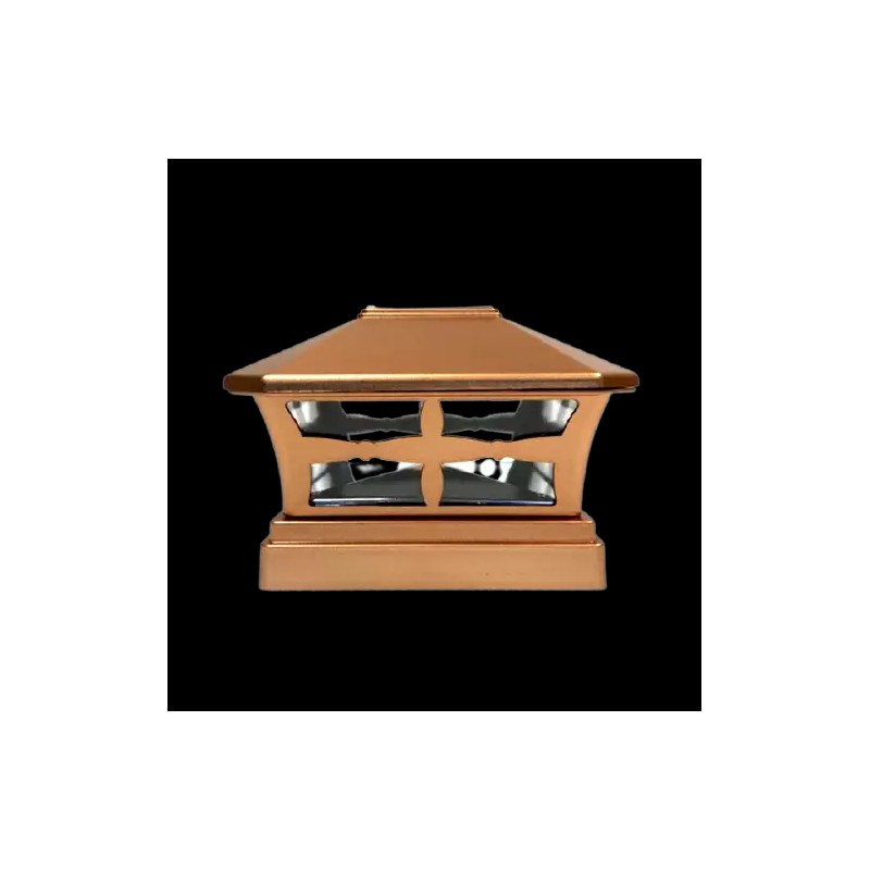 Ntertainment House 4 Pcs Solar Copper/Off White Color 5x5 PVC Post Fence with 1LED Solar Cap Light - COPPER