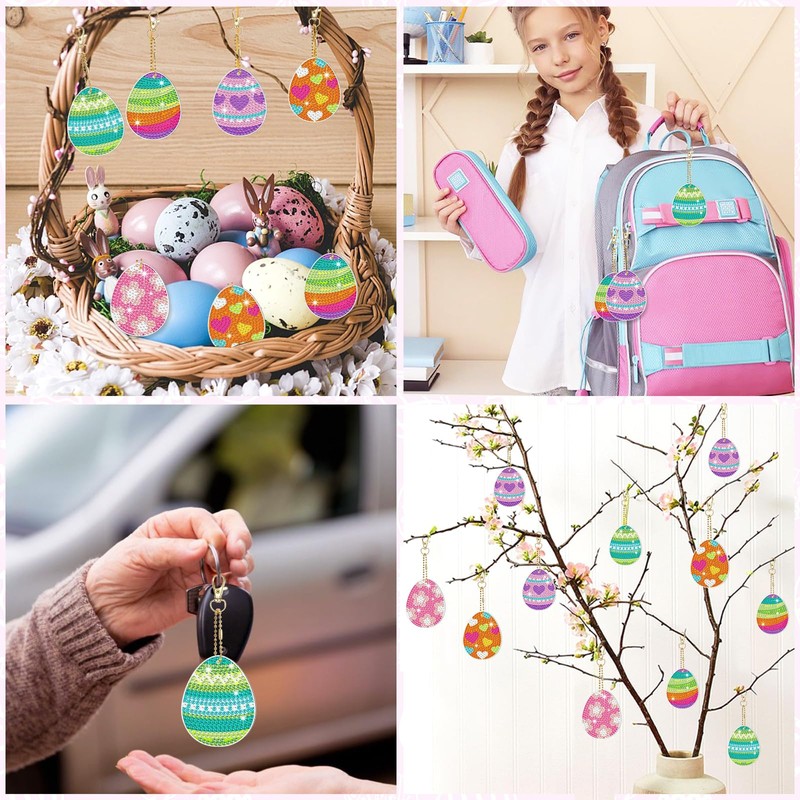 5D Diamond Painting Set Easter Egg Diamond Painting Keyring, DIY Easter Diamond Painting, Diamond Painting Kits Easter Egg, Easter Children DIY Craft Gifts Gift.