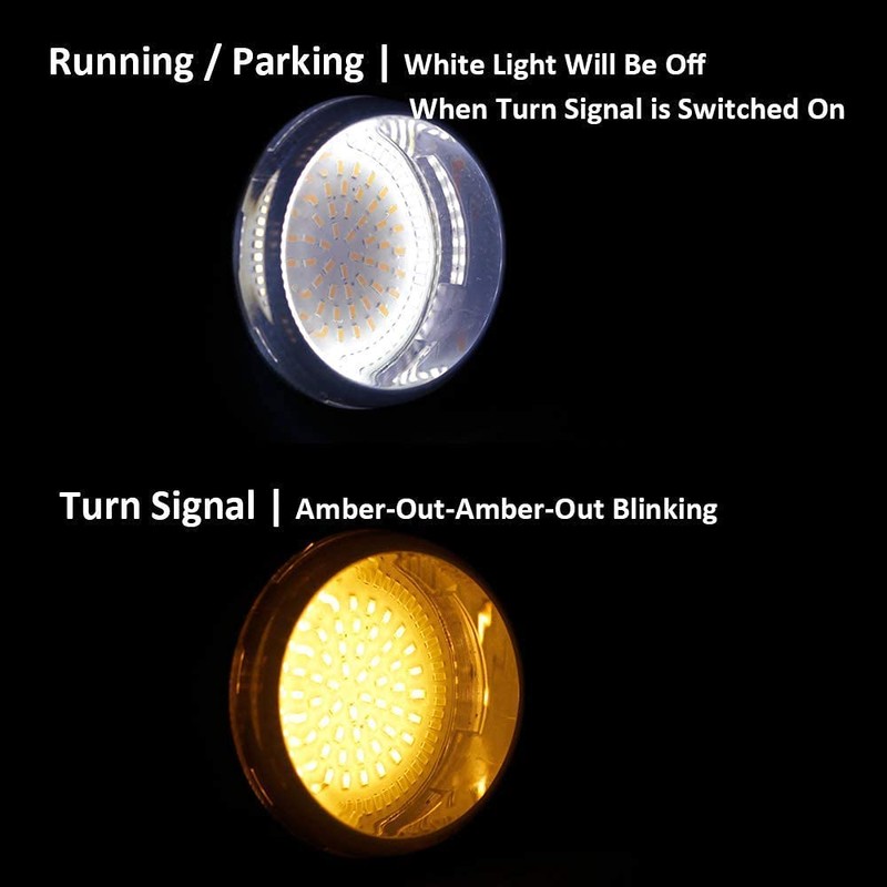 - 2nd generation LED panel lighlts with built-in surface mount LED chips, 1157 double contracts plug switchback mode, outer white ring for running/parking light and center amber for front turn signal, high luminance and low power consumption, increase visibility and provide new lighting pattern