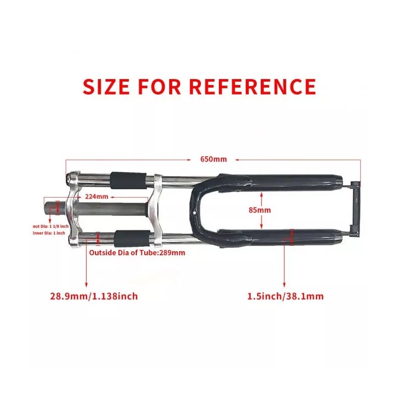 - PLEASE NOTE1: the best safe speed if racing: 35km/h;Outside Diameter of Up Tube:2.89cm/1.138inch and 38.1mm/1.5 inch for lower leg, Suspension forks does not work well with Bicycle handle bar which fits well on out leg diameter 3.15cm to 3.18cm(1.24inch to 1.25inch) of triple tree fork; This product Comes with 12months Warranty. Any questions,please contact us firstly !we can help you solve the problem until you are satisfied.