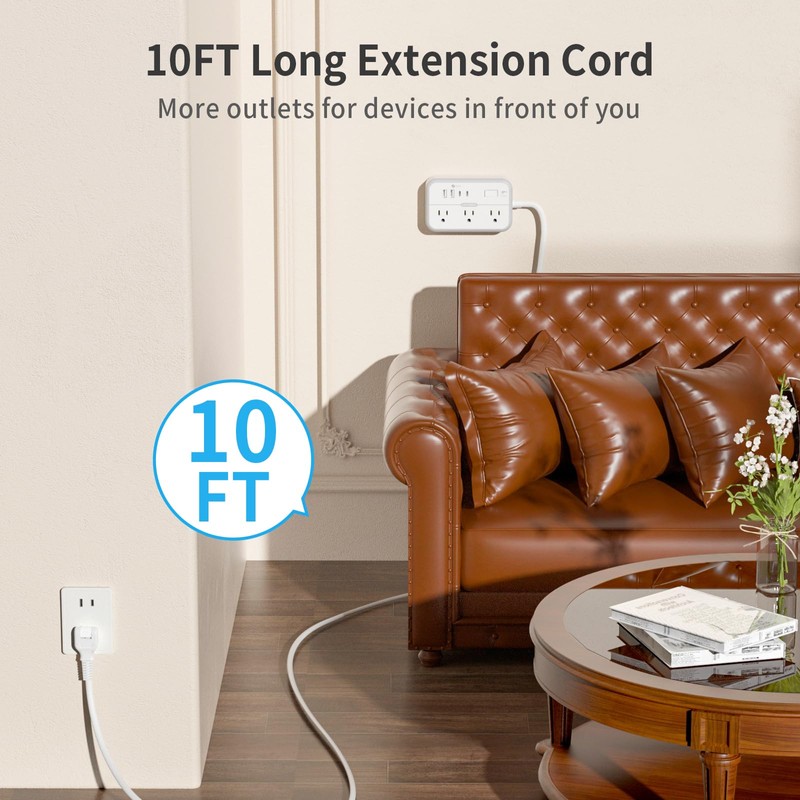 - 【10-in-1 Power Strip with USB Ports】Too many things that need sockets and not enough sockets? NTONPOWER 2 prong extension cord with 6 AC ports and 4 USB ports (2 USB C ports) will automatically detect devices and provide optimal charging current for up to 10 devices at the same time.