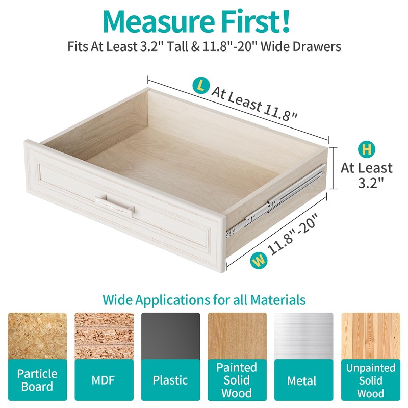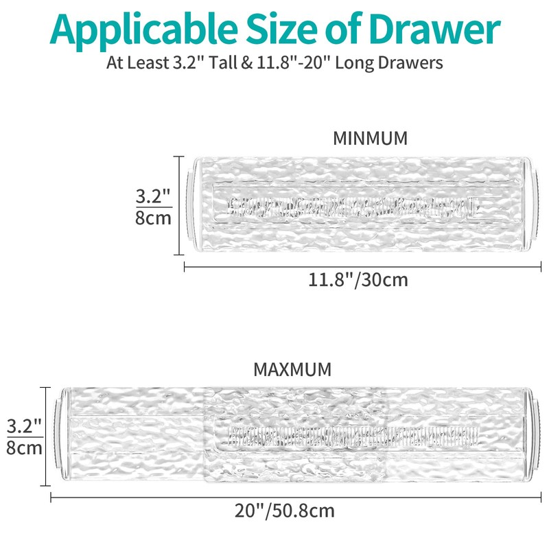 - Expandable & Adjustable: With a width of 0.6", a height of 3.18", and an adjustable length ranging from 11.8" to 20", our drawer dividers can be easily fitted into most drawers and cabinets, providing the ideal solution for keeping your items organized and your drawers tidy at all times.