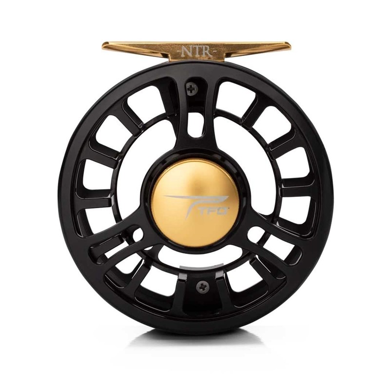 The ‘No Tools Required’ fly reel is as simple as the name sounds. Introducing the all new NTR fly reel series. No fancy tools needed to change retrieve, tighten the drag, or perform any maintenance. Efficient, powerful, and intelligent construction that does not take an advanced degree from an IVY league school to operate. Designed for the angler looking for a high quality machined aluminum fly reel, at a friendly price. The NTR fly reels are offered in two colors, clear-gold and black-gold and comes in four sizes, from a 3/4-weight to a 9/10-weight. Perfect for any single or two-handed rod in the freshwater quiver. TFO NTR fly reels are fully CNC machined from lightweight 6061-T6 aluminum and feature a smooth cork disc drag system, (draw bar design). A one-way stainless-steel spindle bearing with an internal cap and O-ring seal. The drag system is sealed to keep out moisture and dust. The NTR series reel features an out-going check and is easy to change from left to right-hand retrieve. All NTR fly reels come with a black neoprene pouch.
