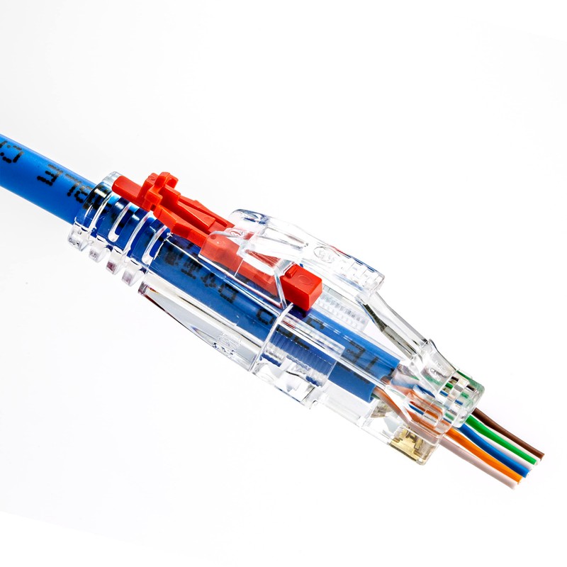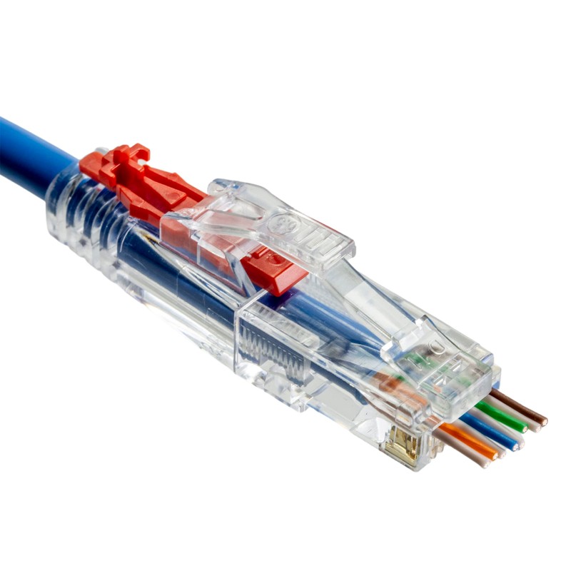- Pass Through Function: Pass Through for EZ Termination, The pass-through function allows wire to pass all the way through the plug while easily to identify the wire sequence before crimping