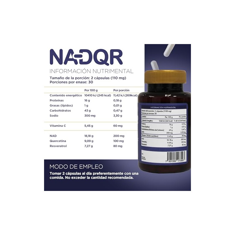 NTX BY NARTEX NAD con Resveratrol, Quercetina y Vitamina C Suplemento Alimenticio en Cpsulas, 60 Unidades de 550mg