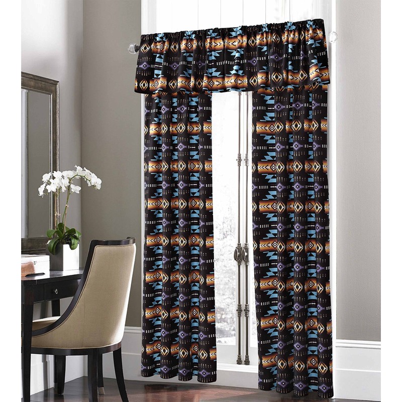 Nu Trendz Signature Southwest Design (Navajo Print) Black 5 Piece Curtain Set, Design #16112