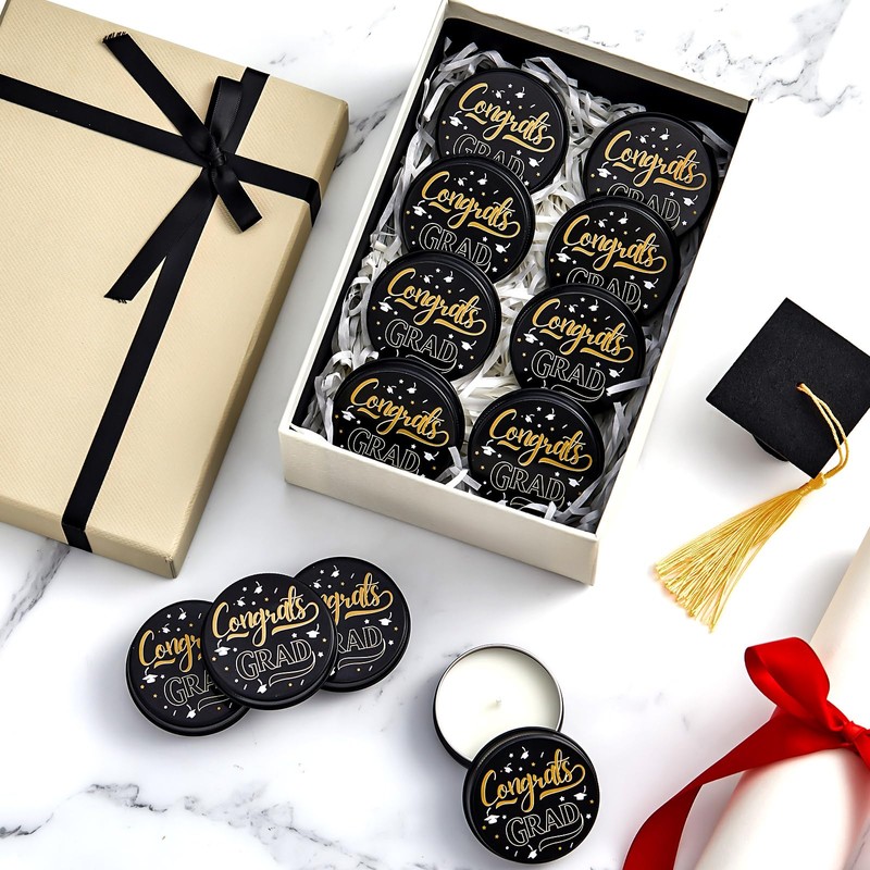 - Reliable Material: the graduation candles made with natural soy wax for a clean, soot-free burn and no unpleasant; The graduation party favor set is packaged in a quality candle tin, which is small and portable