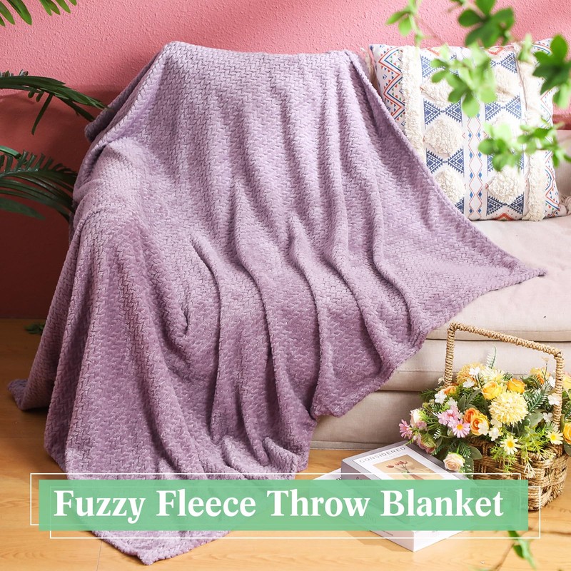 - Package Included: this blanket set includes 24 soft light purple flannel throw blankets, each measuring 50 x 60 inches for ample warmth and coverage; Each blanket comes with a ribbon and a thank you card, making it an ideal gift; Featuring a stylish leaf pattern and large quantity, the fleece blankets bulk are good for daily use, family sharing, and replacements; Suitable for all seasons, they keep you warm in fall and winter, while also serving as a lightweight throw in spring and summer