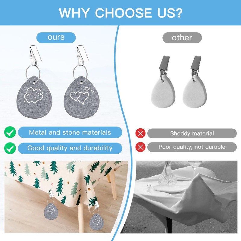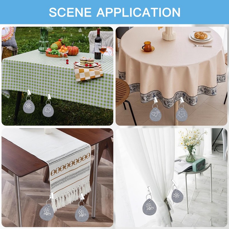 - Wide Applications: this tablecloth weight with clips can be used in many scenarios, such as birthday parties, weddings, outdoor picnics, family gatherings, etc.