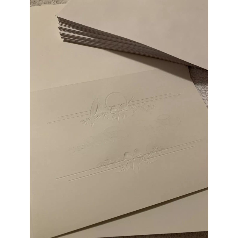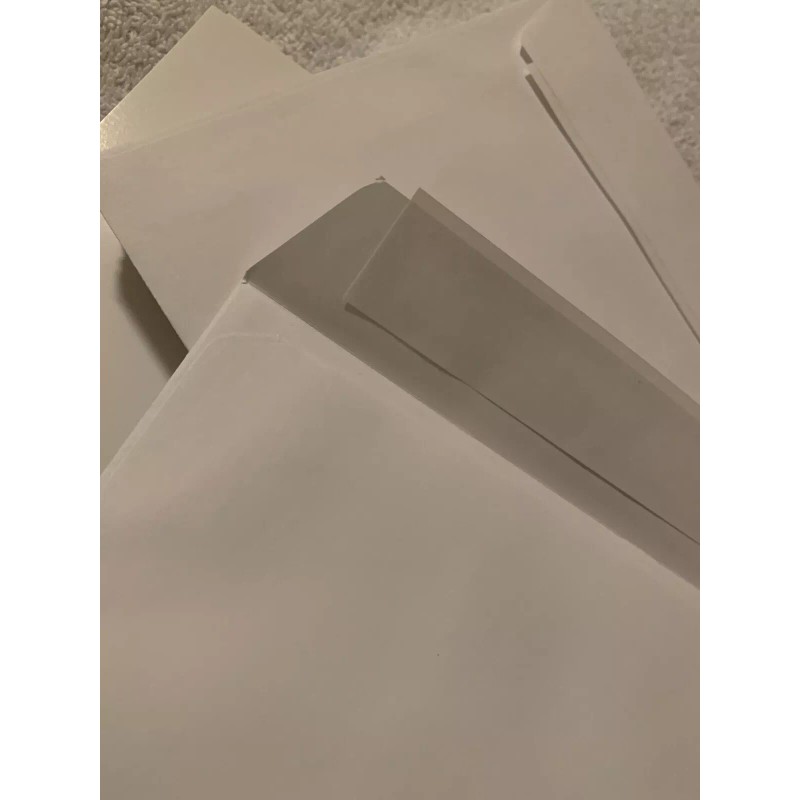 25 matching white envelopes 5-3/4” x 8-3/4” included w grip-seal peel & stick feature, (no licking envelopes)