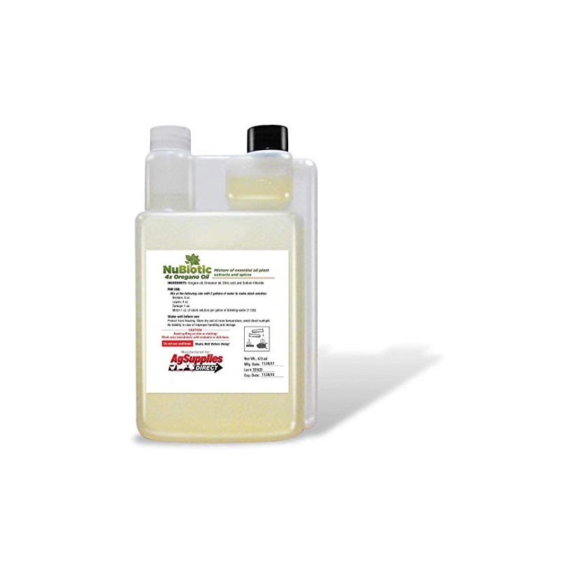 Recently Nubiotic 4X Concentrated Oregano Oil for Poultry has ONLY been available to commercial growers. Now, Nubiotic 4X Concentrated Oregano Oil for Poultry and Turkey, 8oz bottle is for all size farms! Don't let the competition fool you. Our product is highly concentrated (not watered down like some others) with Cinnamon Oil, Citric Acid and Sodium Chloride for optimal animal health! The push is on to eliminate antibiotic usage in poultry. A proven way has been through the use of Oregano Oil concentrate by some of the big poultry producers. Our product is produced with the finest oils available on the market today. You might say you haven't heard our name, that's because Nubiotic 4X Oregano Oil for Poultry up until recently has been sold only in commercial settings. NuBiotic 4X Concentrated Oregano Oil contains oregano oil to kill the bad bacteria and cinnamon oil to support the good bacteria.