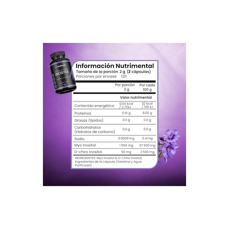 Nuboost Inositol de 240 Cpsulas De 2g - Myo Inositol - Myo Inositol y D-chiro-inositol Mezcla 40 1 - HECHO EN USA