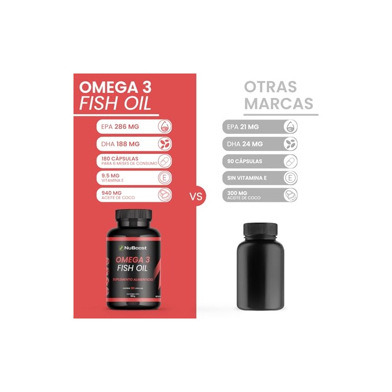 Nuboost Omega 3 1000mg - 180 cápsulas Aceite de Salmon Puro - Omega 3, fish oil EPA y DHA - HECHO EN USA (1)