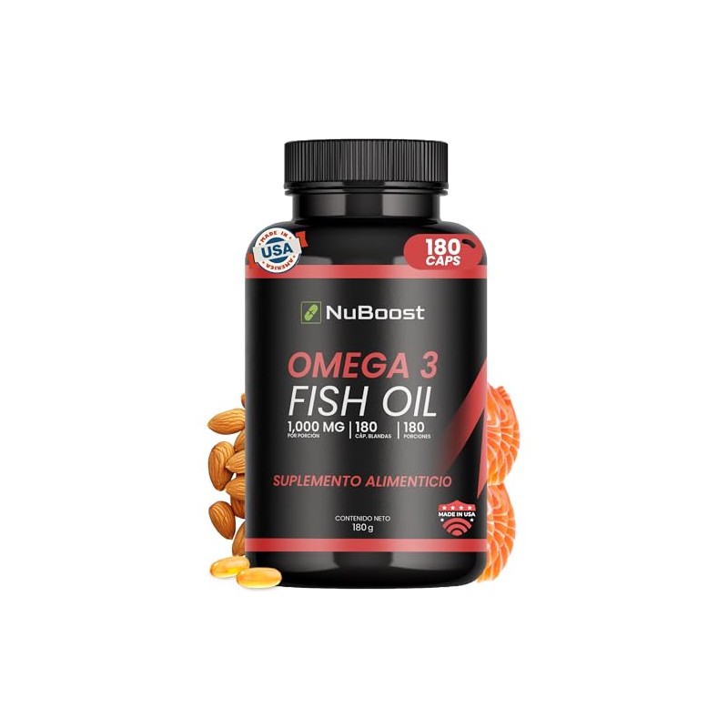 Nuboost Omega 3 1000mg - 180 cpsulas Aceite de Salmon Puro - Omega 3, fish oil EPA y DHA - HECHO EN USA (1)