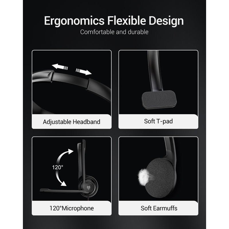 - NUBWO PC Headset with Mic, 3.5mm/USB Computer Headset with Detachable surround sound Vol./Mute USB Control, On-Ear Wire VoIP Headsets for casual gaming, e-learning and music