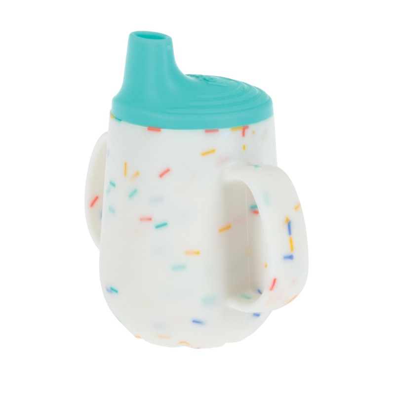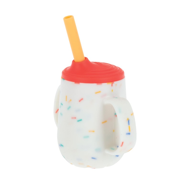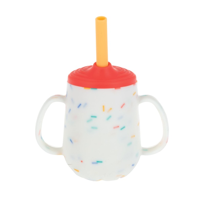 Nuby 3-Stage Training Cup Set - Silicone Tumbler with Spout and Straw Combo - 4 oz - 6+ Months - Coral and Sprinkles